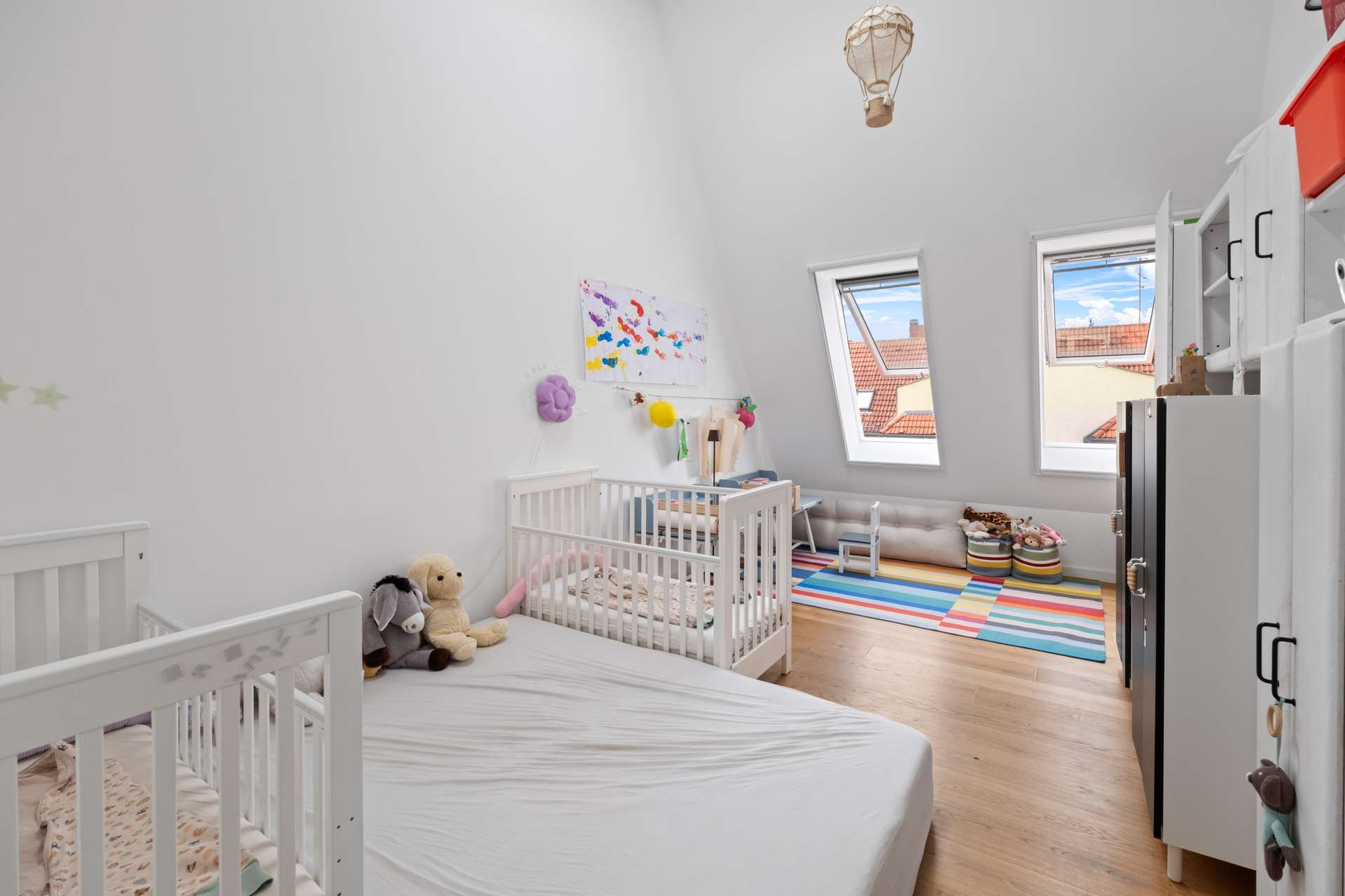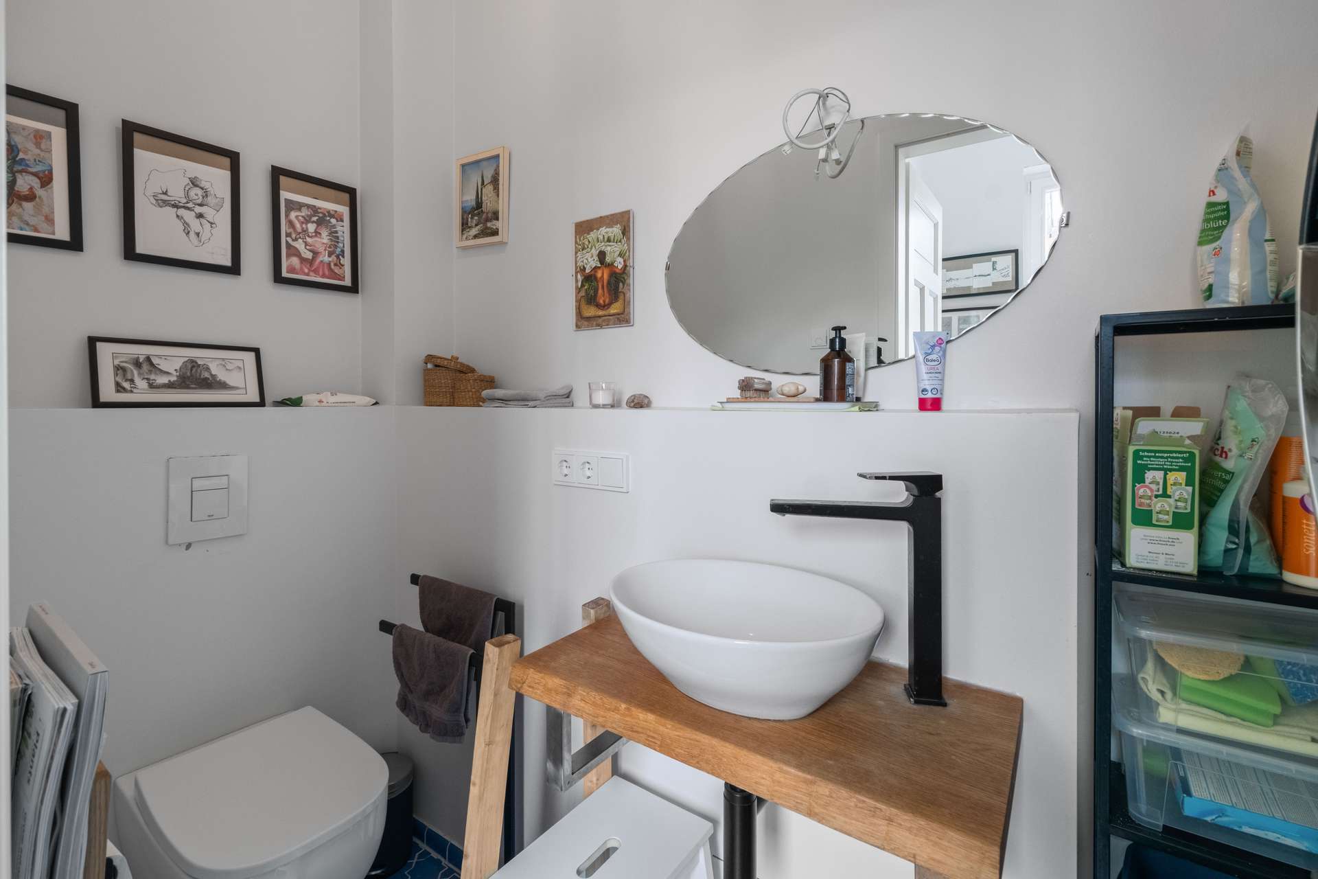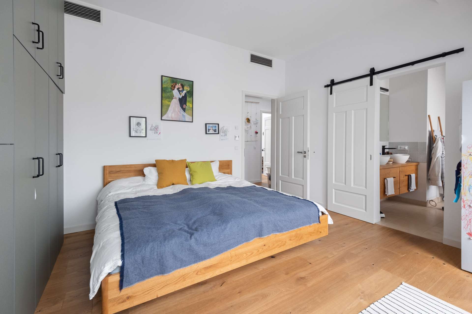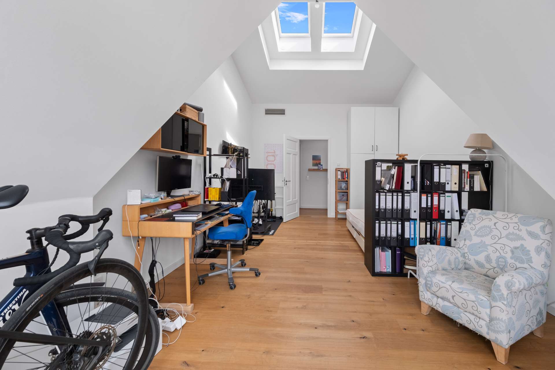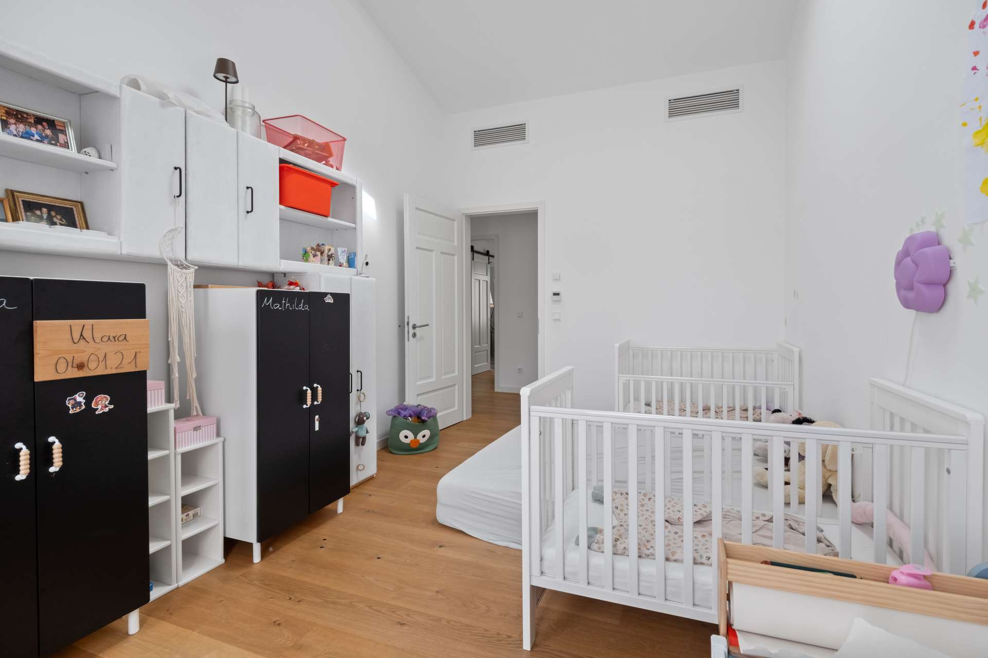 Drei Schlafzimmer bieten ausreichend Rückzugsorte für Familie oder Gäste. Zwei stilvolle Vollbäder – eines davon en suite mit einem handgefertigten Waschtisch aus massiver Eiche und hochwertigen Elementen von Hoesch und Hansgrohe – sowie ein separates Gäste-WC mit libanesischen Designerfliesen runden den Grundriss perfekt ab. Eine zusätzliche Abstellkammer sorgt für praktischen Stauraum.
