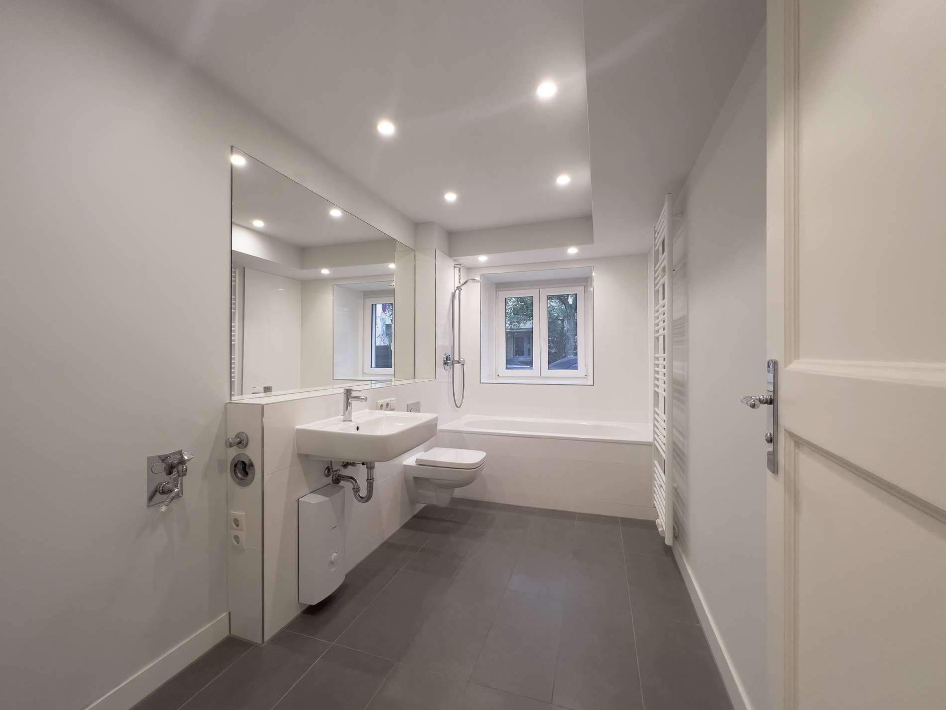 - großformatige Fliesen im Badezimmer