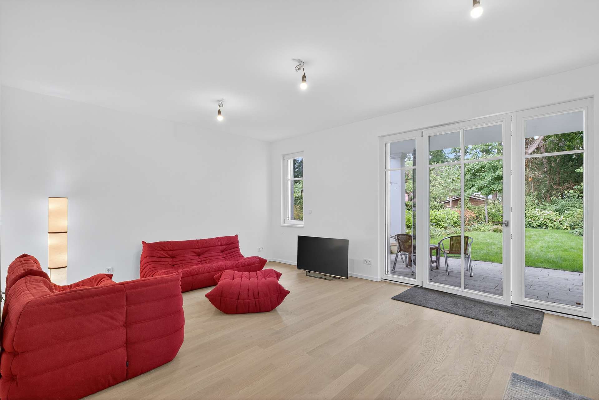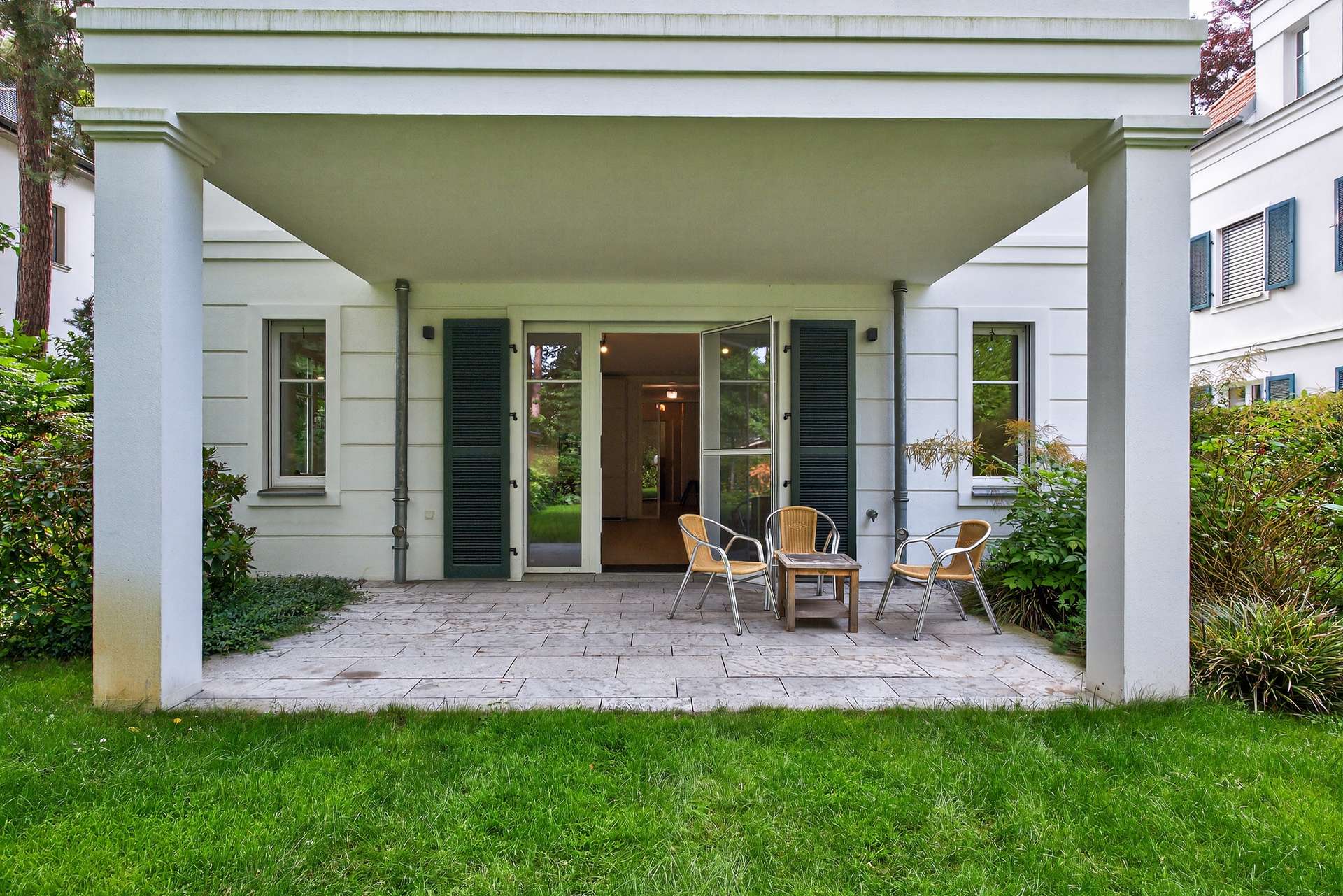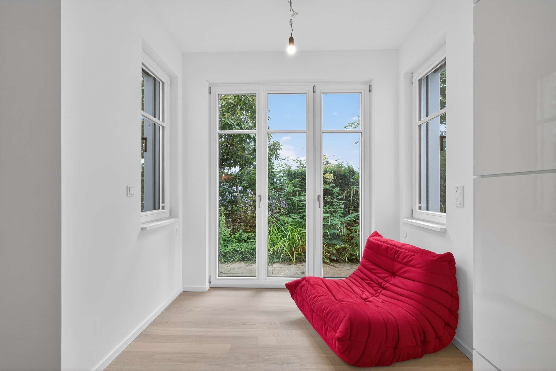 Bereits beim Betreten der Wohnung überzeugt das durchdachte Raumkonzept: Großzügige, bodentiefe Fensterflächen im offen gestalteten Wohn- und Essbereich sorgen für ein lichtdurchflutetes Ambiente und eröffnen herrliche Ausblicke ins Grüne. Von hier sowie vom Schlafzimmer aus gelangen Sie direkt auf die große Sonnenterrasse und in den privaten Garten, der viel Ruhe und Privatsphäre bietet – ein echtes Refugium mitten in Berlin. Ein drittes helles Zimmer im EG eignet sich ideal als Kinder-, Arbeitszimmer.