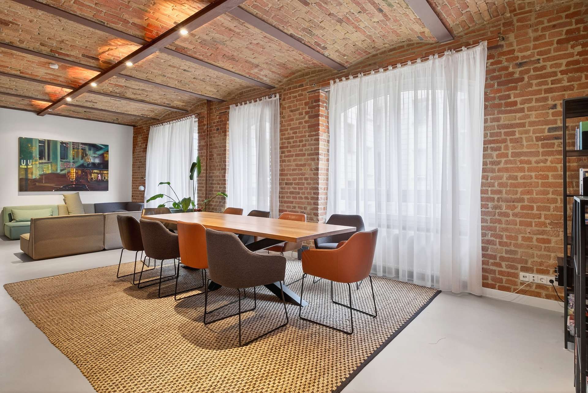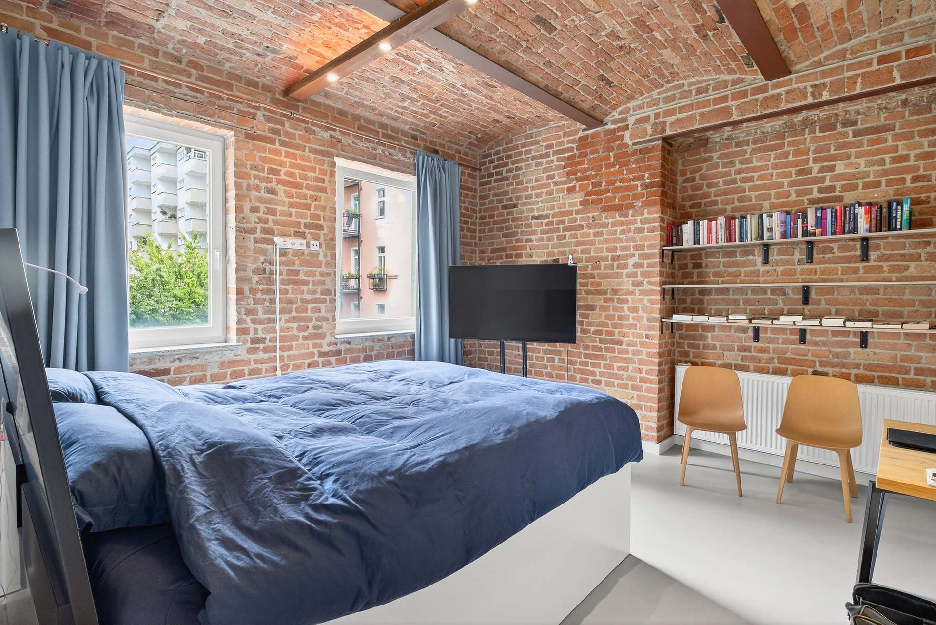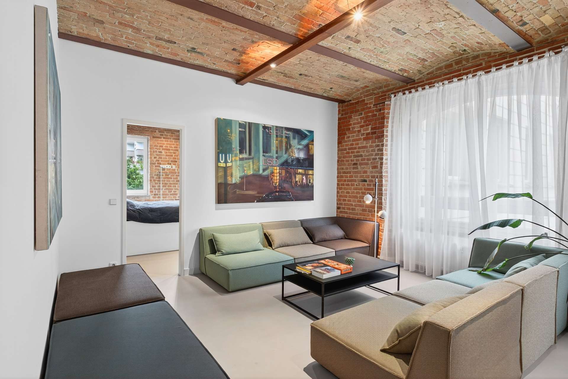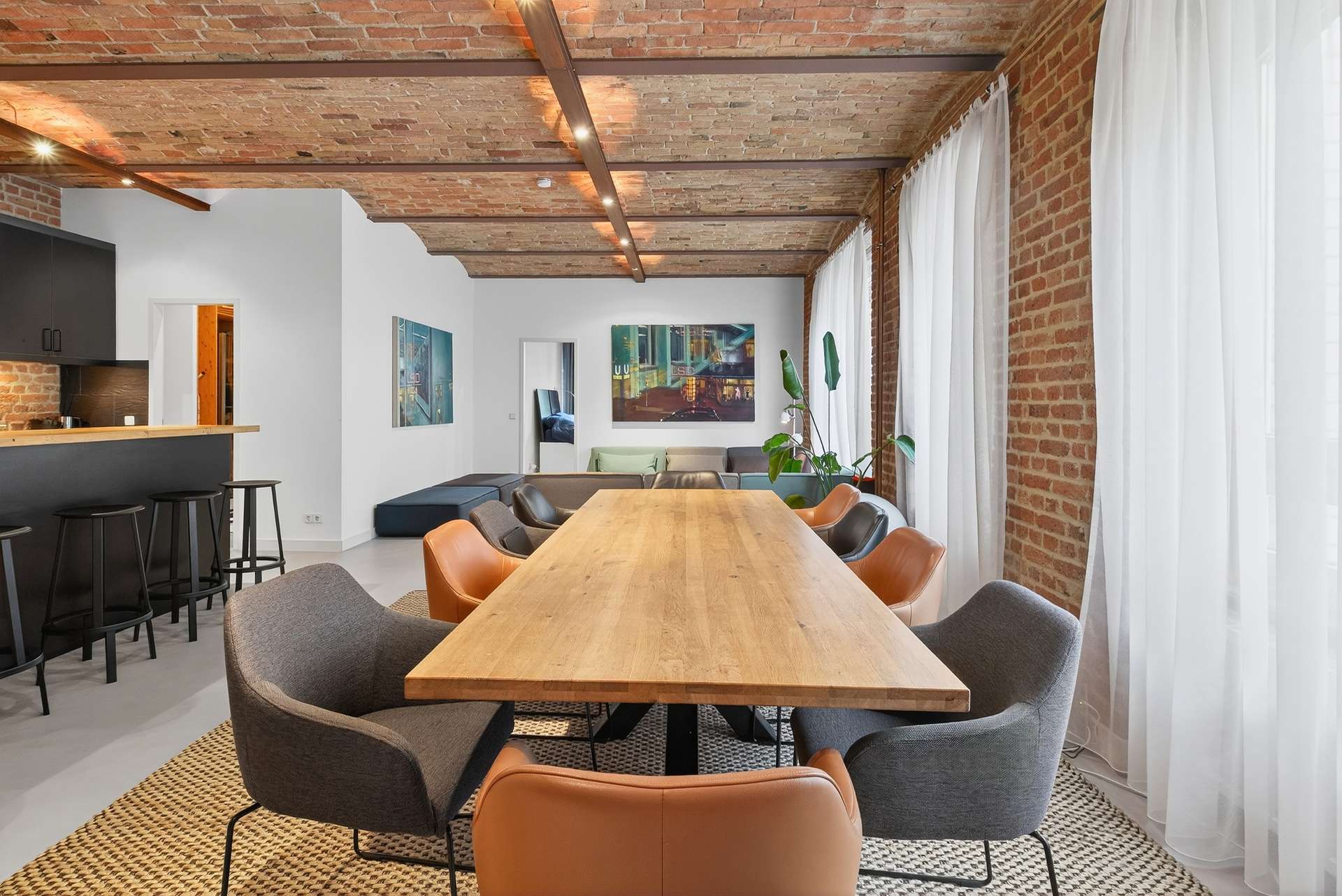 Die Wohnung bietet auf ca. 104 Quadratmeter mit ihren preußischen Kappendecken ein einzigartiges und offenes Wohnerlebnis. Mit einem Schlafzimmer, einem vollausgestattetem Badezimmer mit Dusche und Badewanne, einem Gäste-WC sowie einem clever nutzbaren Eingangsbereich mit Sitzmöglichkeit. Das lichtdurchflutete Loft erscheint dank der großen Fensterfronten stets hell und freundlich. Ein weiteres Highlight ist die exklusive Küche mit Elektrogeräten, die sich durch ihr minimalistisches und modernes Design perfekt in den offenen Wohn- und Essbereich mit Küchentresen schmiegt. Ein Weinkühlschrank rundet das Angebot ab.